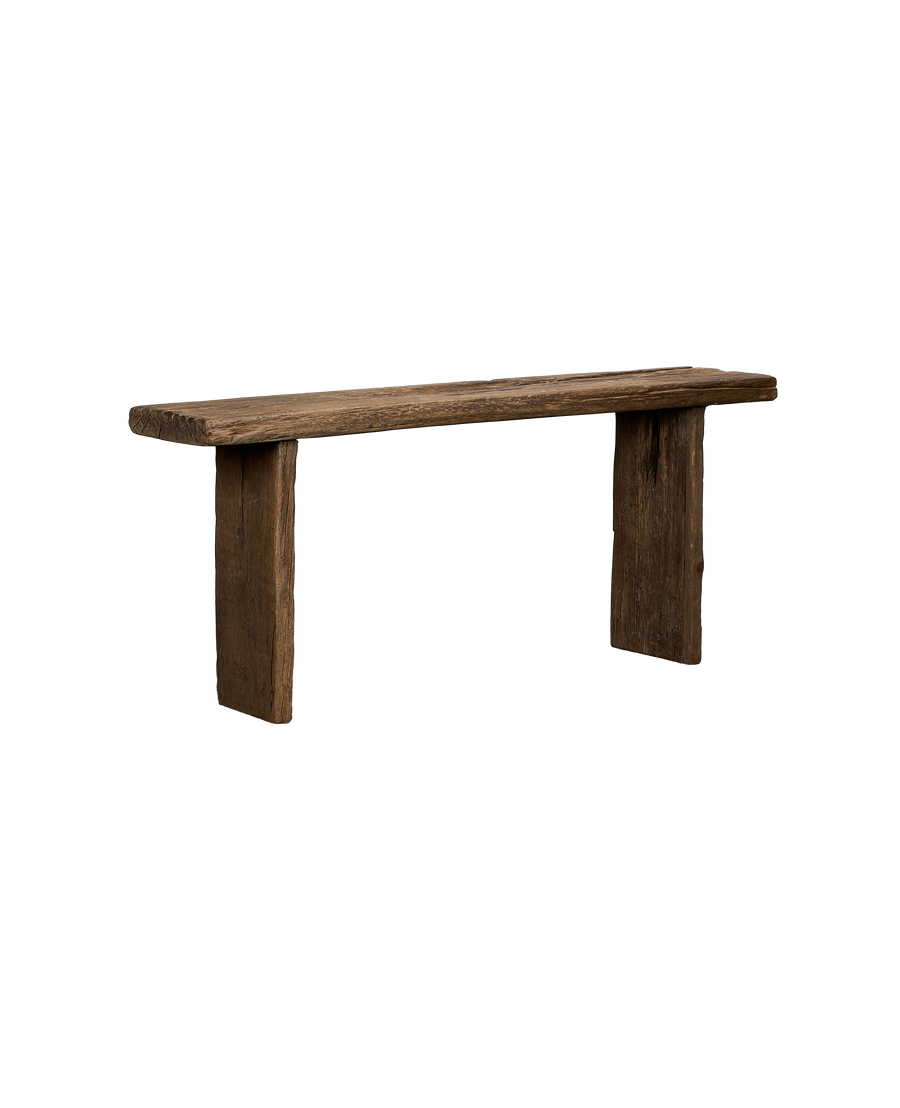 These handcrafted consoles, constructed from reclaimed wood, boast a natural wood finish, adding texture and functionality to any space. Style them in a foyer or a communal area.