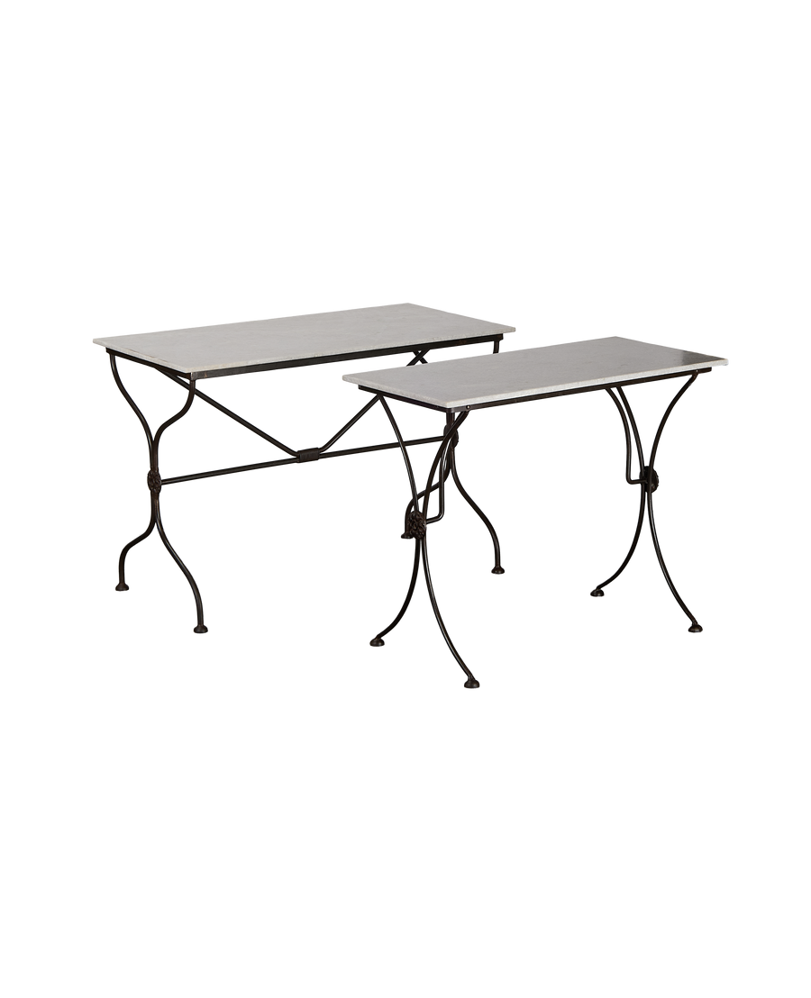 Each Trellis Marble Bistro Table is meticulously hand-finished to honor the natural character of its materials. Expect inherent variation in the marble, including veining, tonal shifts, and soft movement unique to each slab, along with nuanced irregularities in the ironwork that reflect its handcrafted nature. A protective wax finish is applied to support longevity while allowing the piece to develop a graceful patina over time. Care according to environment and conditions is recommended.