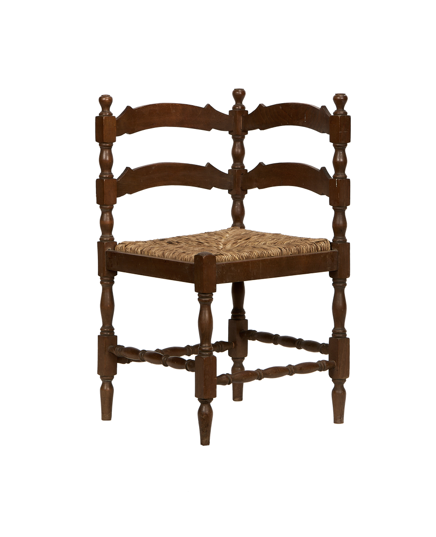 Expect variations in its rich patina, coloration, texture, and markings, along with minor repairs. These elements reflect the age and history of this carefully preserved piece. The handwoven rush seat may also present subtle differences in weave and tone, celebrating its artisanal quality.