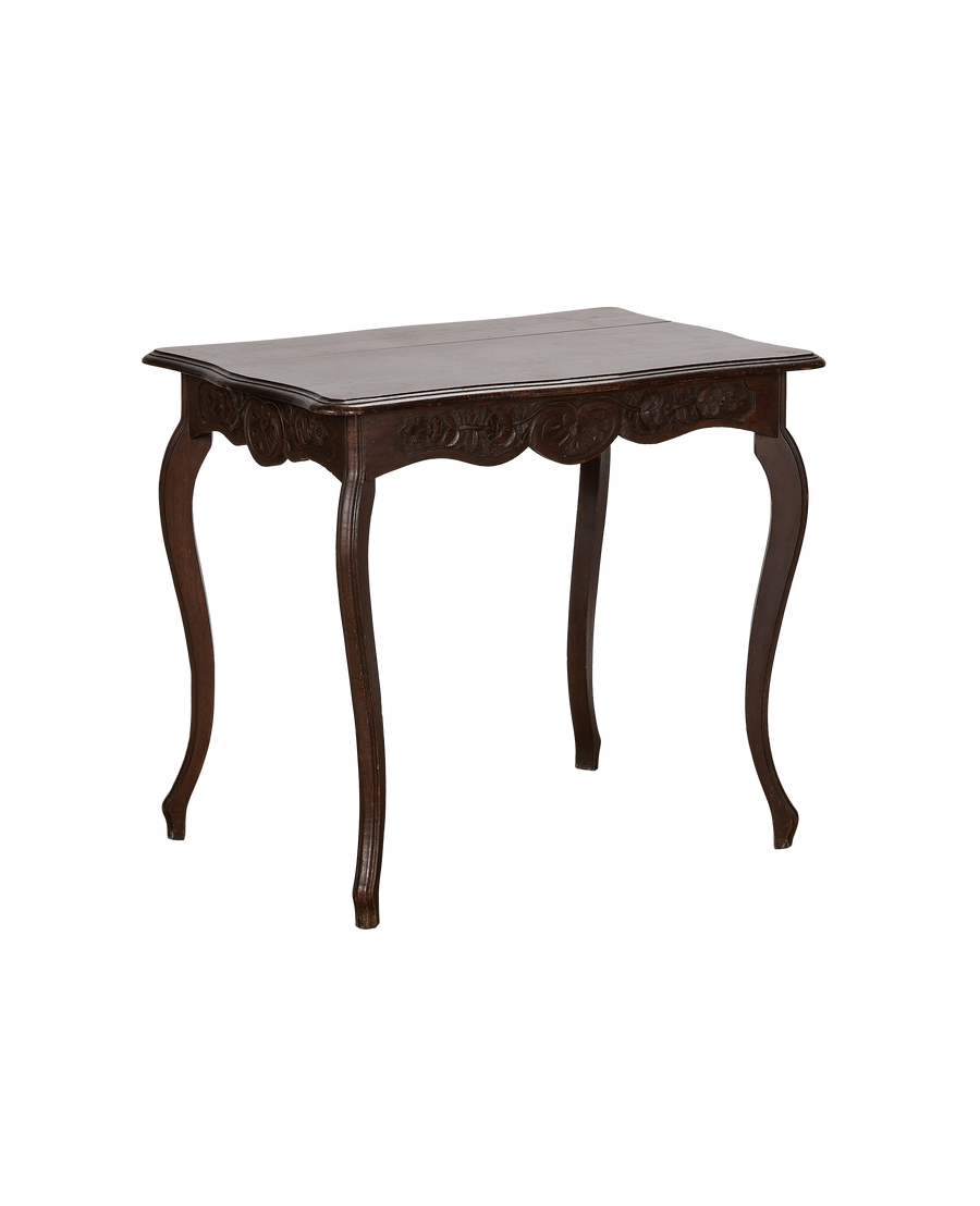 The deep, rich wood finish, with its quietly mellowed patina, suggests years of use and careful preservation. It serves beautifully as an accent piece, a small console, or a stand for a treasured object, bringing warmth and character to any room.