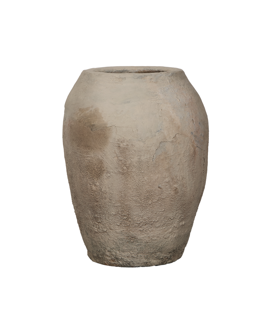 Expect variations in silhouette, coloration, patina, texture, markings and minor repairs. This object is not modernly water safe and should be used with a separate, internal water tray or properly sealed with drainage if planting directly for use outdoors. This object weighs 61 lbs. Arrives via scheduled freight delivery.