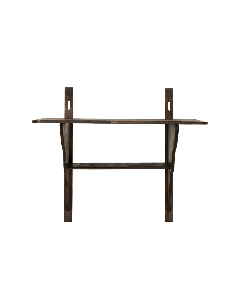 This collected piece brings a touch of old-world utility and heritage to a space, ideal for organizing spices in a kitchen, holding small collected objects in a study, or presenting a row of petite plants. The natural grain of the wood, now softened by age, offers a warmth that integrates smoothly into various settings.