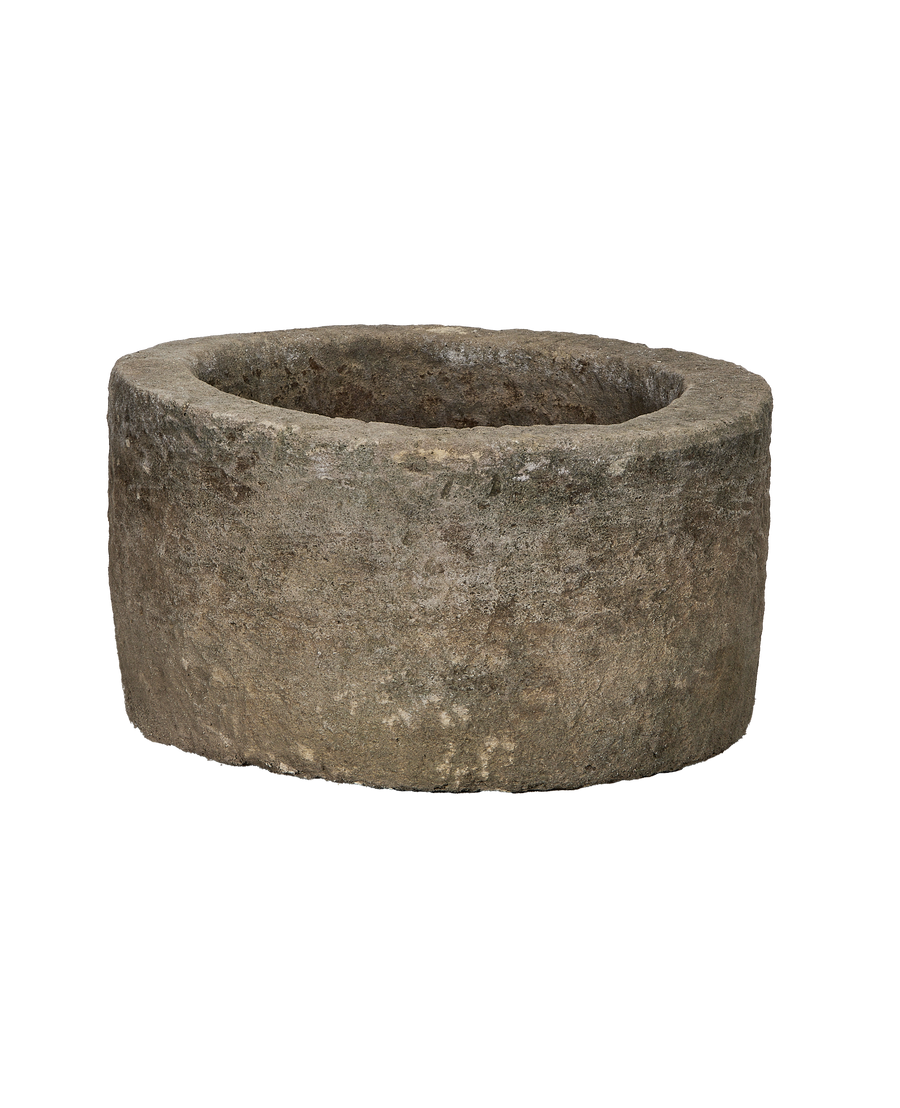 Expect varied patina and signs of wear and tear consistent with age. This object is not modernly water safe and should be used with a separate, internal water tray or properly sealed if planting directly for indoor use. This object weighs 265 lbs – professional placement and/or installation recommended. Arrives via scheduled freight delivery.