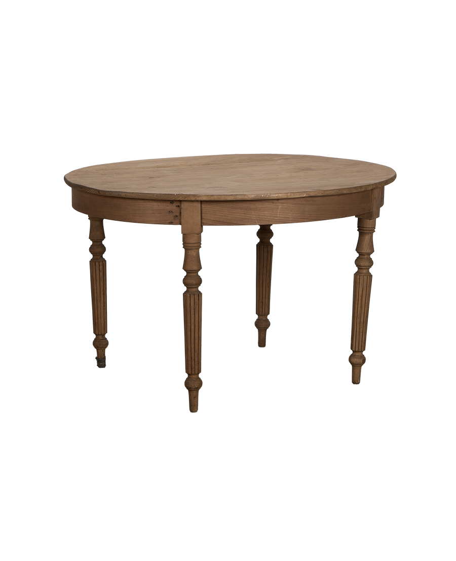 Quietly inviting, this piece lends warmth and a collected feel to any dining space. It bridges rustic charm with subtle refinement, a perfect foundation for both everyday use and special occasions. The timber has developed a rich patina over time, echoing its long history.